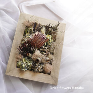 そこで、衣替えをした秋のお部屋にピッタリなフレームアレンジを作りました。