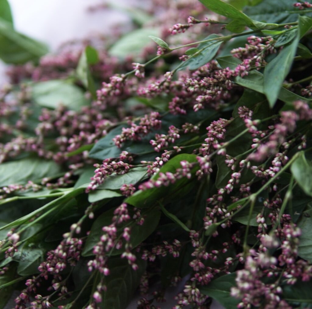 手に持ちきれないほどの藍のお花を収穫させていただきました。