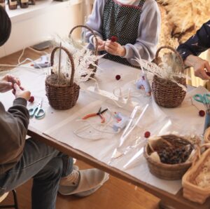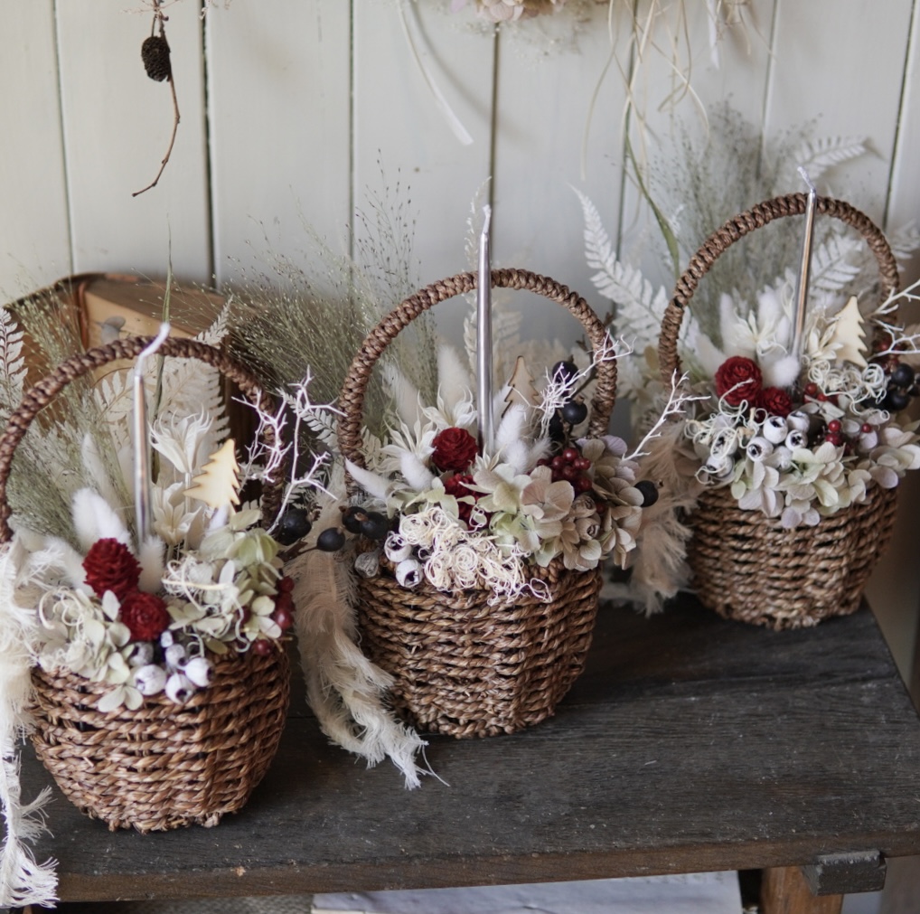 2025年11月7日 / 最終更新日時 : 2025年11月7日 hanaka_kaori ワークショップ クリスマスカゴアレンジ ワークショップ 仲良し3名さまでご参加いただきました。 楽しくおしゃべりしながら作り進めて、最後にはワイヤリングもお上手に♪ ヒメワラビは動きが自由で個性もある花材ですが、皆さまお上手にバランスよくお使いくださっています。 華やかな作品ができました。 きっと素敵に飾っていただくことと思います。 ご参加ありがとうございました。 またお待ちしております。