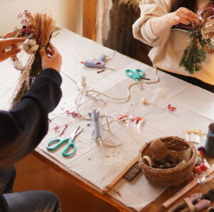 花材選びや色合わせして、あれこれ迷いながら作るのも楽しい時間です。