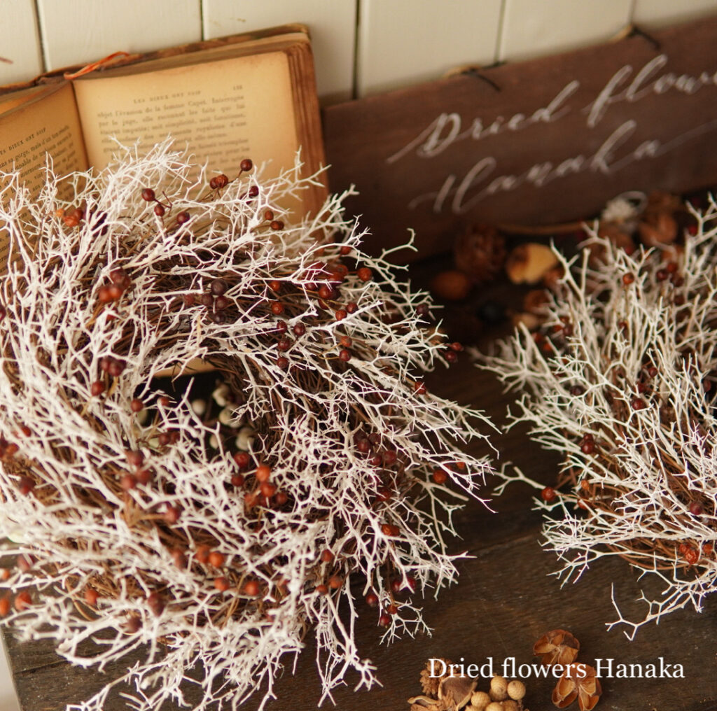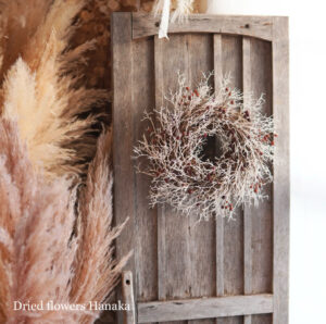 ずっと前から作っているこのリース、あまり目立たないのに、静かに….だけどとてもお気に入りいただく、不思議なリースです。