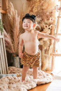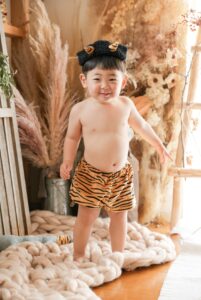 鬼さんの格好もおめかし衣装も、去年より少し凛々しくなってきたお顔にとってもお似合いです。