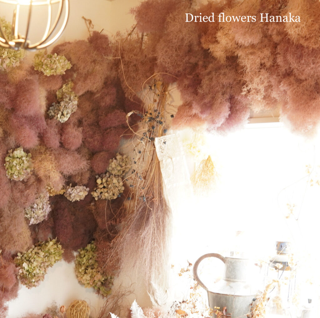 先日のポップアップを一緒に盛り上げてくれたお花たちを使って、アトリエに新たなフォトブースを作りました。
